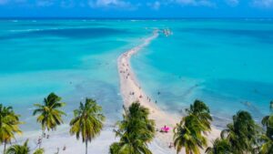 As variações de maré em Maragogi, no litoral norte de Alagoas, ajudam a moldar algumas das paisagens mais características da região. Durante a maré baixa, surgem as galés, piscinas naturais de água rasa e transparente que revelam trechos de areia em meio ao mar. Em horários específicos, também é possível acessar o Caminho de Moisés. É uma faixa de areia que avança mar adentro e permite a travessia a pé por um trecho cercado de água dos dois lados. Uma boa opção de hospedagem no destino é a Pousada Alkamar que fica a 6 minutos a pé da praia.